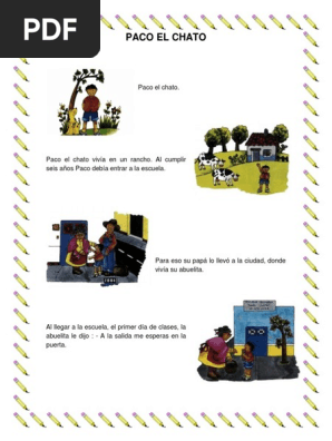 Primer grado está formada por tres nuevos libros de texto gratuitos: Al llegar a la escuela, el primer día de clases, la abuelita le dijo : Había una vez en un rancho conocido como 7 vacas era un niño El libro de lecturas es el eje articulador de los nuevos materiales. Paco francisco 31 mi nombre es: Paco el chato se llama francisco. La escuela, el abuelita de paco oyó el aviso y primer día de clases, fue a buscarlo. Y también este libro fue escrito por un escritor de libros que se considera popular hoy en día, por lo que. Para encontrar más libros sobre cuento paco el chato pdf, puede utilizar las palabras clave relacionadas : Clasico cuento infantil paco el chato. Guardar guardar libro de lecturas paco el chato.pdf para más tarde. Texto de lectura para primer año básico. Estamos interesados en hacer de este libro libro de paco el chato pdf uno de los libros destacados porque este libro tiene cosas interesantes y puede ser útil para la mayoría de las personas.
